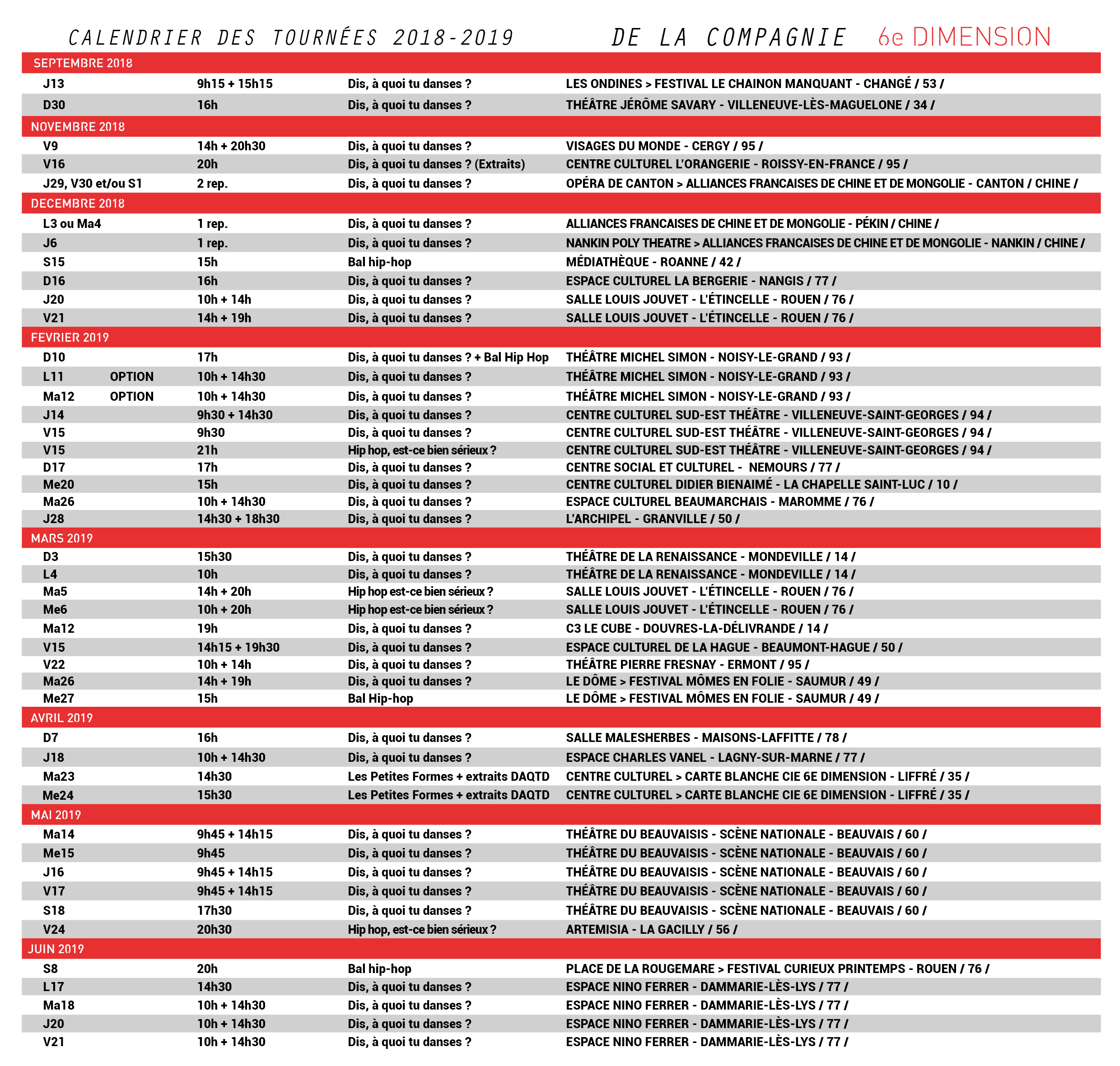 Découvrez tout le calendrier des tournées > 2018-2019 de la cie 6e Dimension !