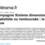 « Avec la compagnie 6ème dimension, le hip-hop se prend un coup de nerfs au féminin, et ça chauffe ! (…) Autour de la quête de l’homme idéal, ce spectacle annoncé comme une bombe de vitamines joue la carte de la virtuosité et de l’humour en surfant sur tous les styles hip-hop.«