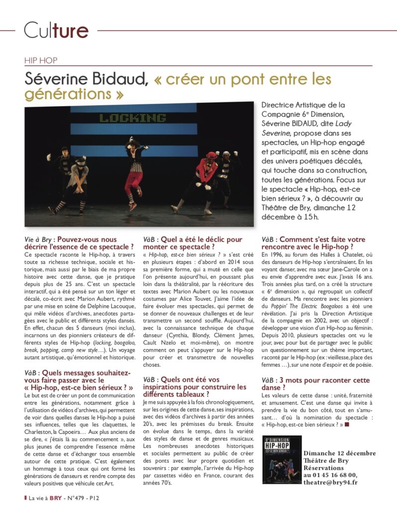 « Hip-hop, est-ce bien sérieux? est un spectacle décalé et plein d’humour où l’on abat les clichés. » – extrait de l’interview de la chorégraphe Séverine Bidaud