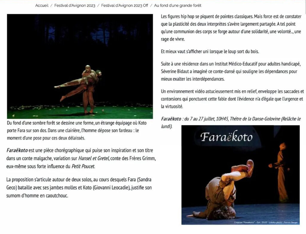 « Deux coups de cœurs au festival Off d’Avignon 2023 : Faraëkoto… »