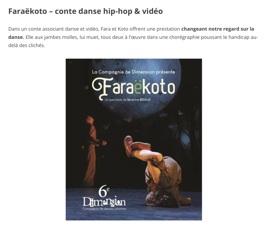 « …Duo de hip-hop tout en poésie par lequel le handicap se mue en danse et devient art… »
