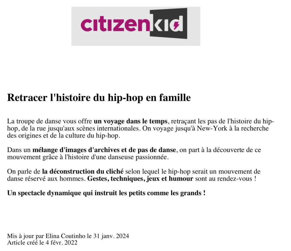 « Il faut un sacré savoir-faire et un culot monstre pour adapter la danse urbaine à un public familial. »